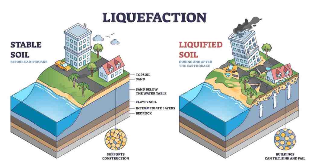 Earthquakes can result in the ground shaking, soil liquefaction, landslides, fissures, avalanches, fires and tsunamis. ( https://www.who.int/health-topics/earthquakes#tab=tab_1 )